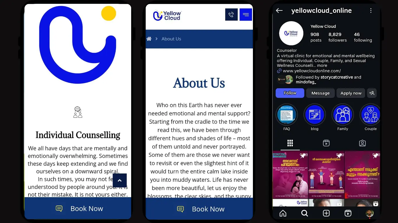 The project was an online integrated digital marketing campaign for my own site, https://www.yellowcloudonline.com/, on behalf of client Yellow Cloud. The overall goal was to build my brand as the top Freelance digital marketer in Calicut by maximizing online visibility and interaction with a dual strategy: performing technical and on-page Search Engine Optimization (SEO) to create better organic rankings, and creating an active social media presence to create brand awareness and generate qualified traffic to the site.