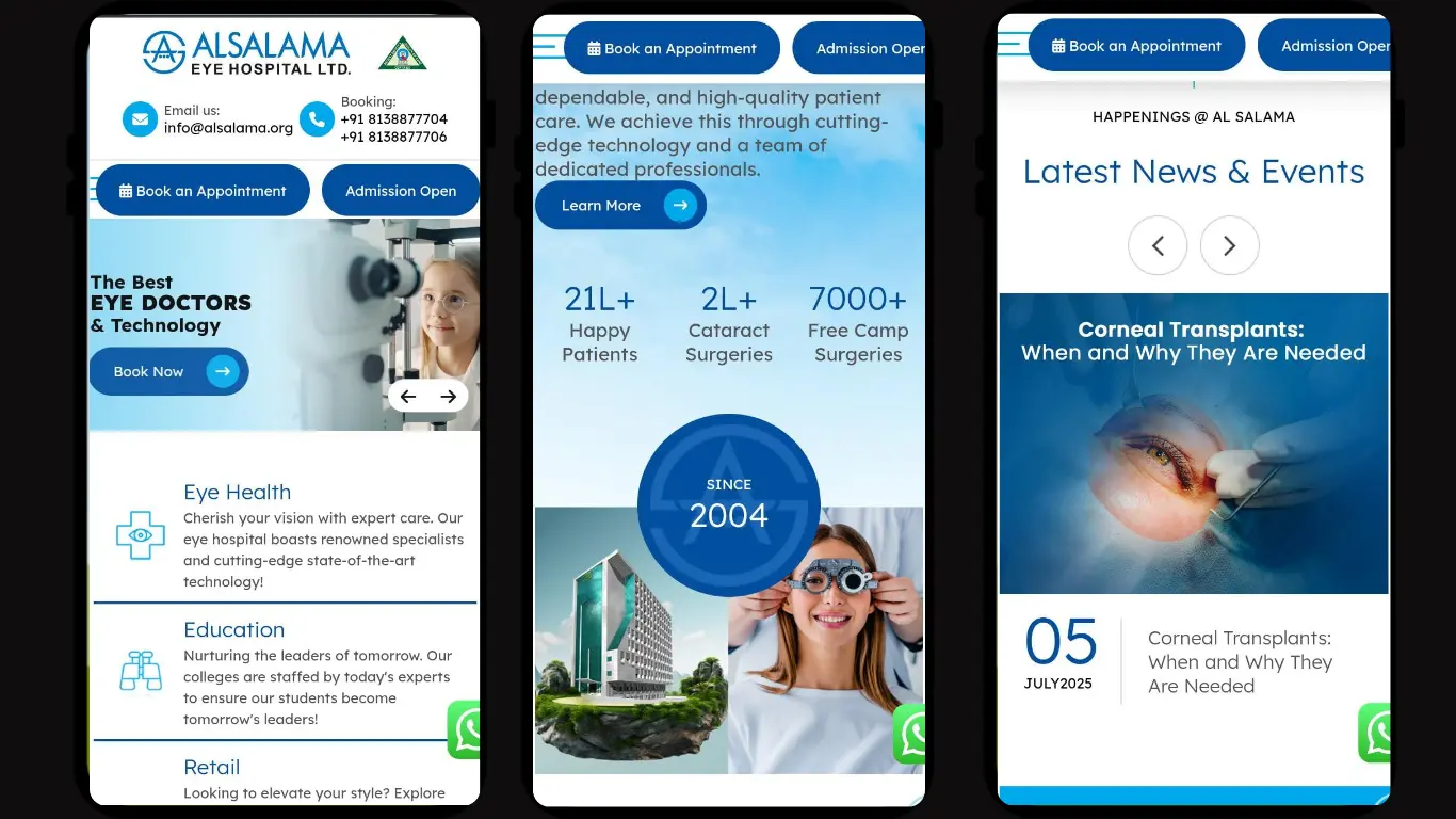 Being the Freelance digital marketer in Calicut handling this project, I created and implemented an extensive digital marketing plan for Al Salama Eye Hospital. The primary aim was to make the hospital more prominent digitally to gain more patients, earn their trust, and position its expertise in eye care. The plan rested on two key pillars: a patient-focused Search Engine Optimization (SEO) campaign to drive up visibility for key eye care services, and a reputation-based social media approach to educate, activate, and create an empathetic community on the web.